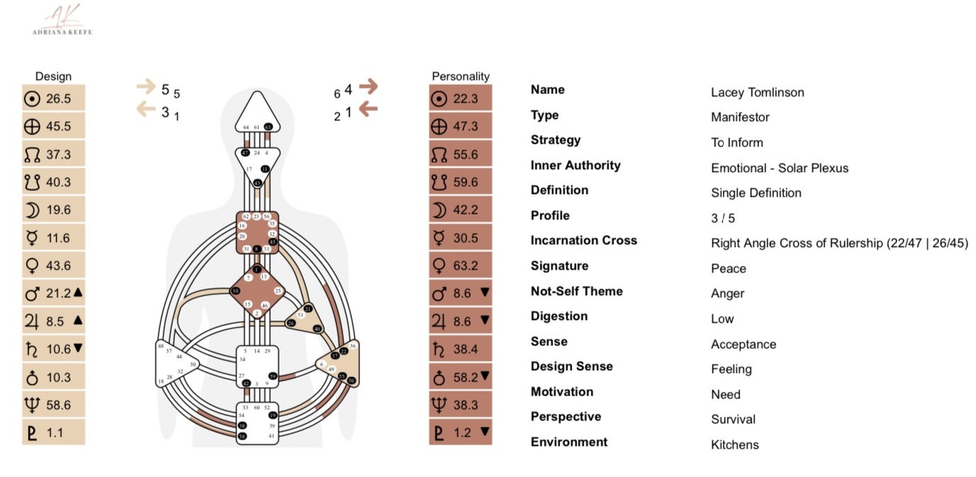 I had never heard of Human Design until a few weeks ago. Human Design is a complex system/chart based off the location and time of your birth. It combines aspects of many things like astrology and chakras to show how you were designed to operate in this life.