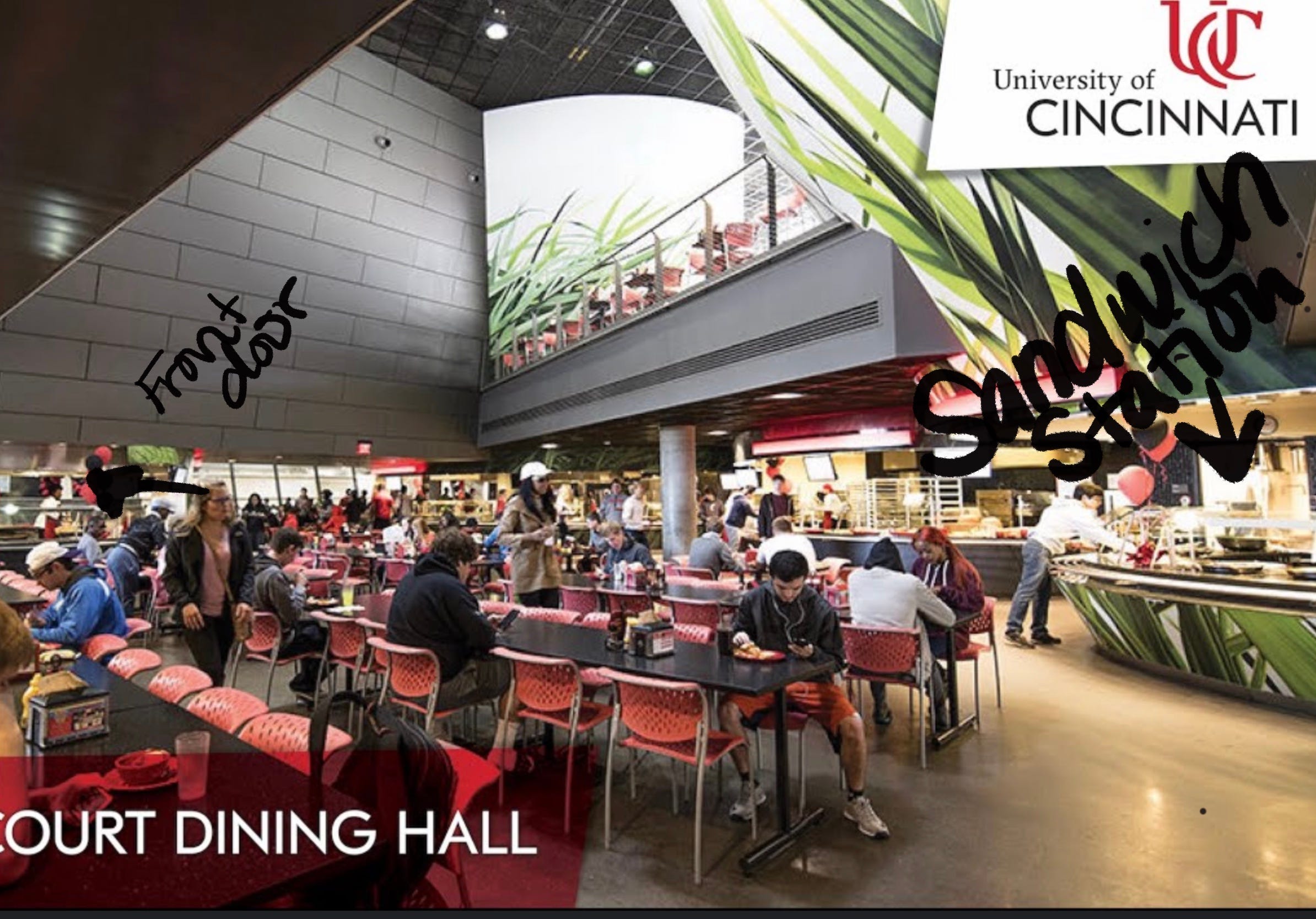 I wasn’t feeling great. Just normal under the weather stuff. I wasn’t much of a going out or partier, so fight the urge to make an assumption about why a college student wouldn’t be feeling well on a Sunday. I don’t remember being particularly bad, though, just not feeling well overall. We get to Center Court (the cafeteria open), and take a look at everything. Nothing is particularly catching my eye, and there was someone working the sandwich station. Easy, just get a sandwich. The sandwich station just happens to be the furthest from the front door, so I make my way over.